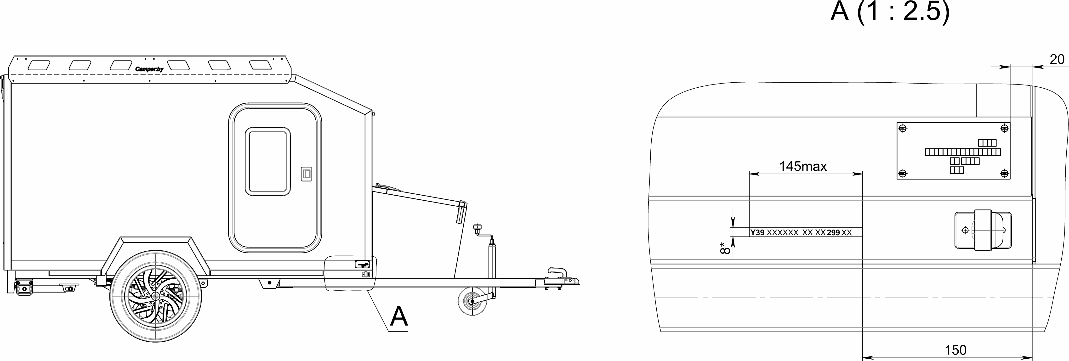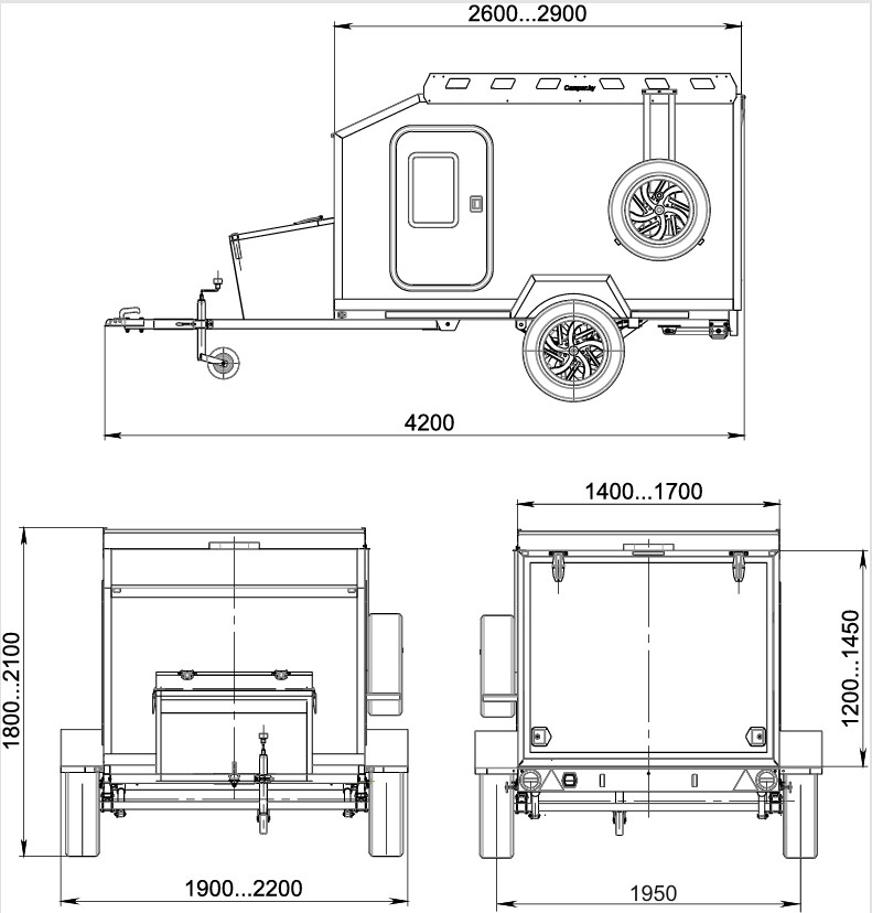 Основные размеры прицепа - каравана представлены на рисунке 1.